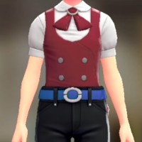 「ポケモン レジェンズ Z-A」における服装(着せ替え)「ベスト&リボンブラウスセット - ワインレッド ホワイト×レッド」の画像や販売場所・ブランドなどを紹介しています。