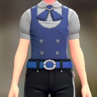 「ポケモン レジェンズ Z-A」における服装(着せ替え)「ベスト&リボンブラウスセット - ブルー グレー×ブルー」の画像や販売場所・ブランドなどを紹介しています。
