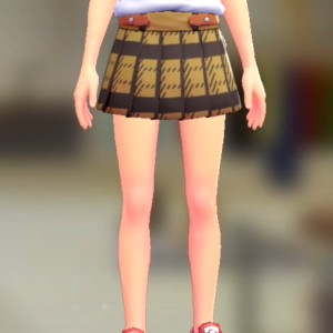 「ポケモン レジェンズ Z-A」における服装(着せ替え)「チェックプリーツキュロット - ブレイブリーキャメル」の画像や販売場所・ブランドなどを紹介しています。