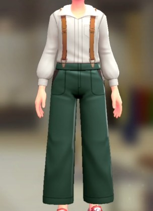 「ポケモン レジェンズ Z-A」における服装(着せ替え)「サスペンダーパンツセット - グリーン ホワイト」の画像や販売場所・ブランドなどを紹介しています。
