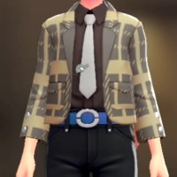 「ポケモン レジェンズ Z-A」における服装(着せ替え)「ジャケット&シャツセット - ブレイブリーグレー ダークブラウン」の画像や販売場所・ブランドなどを紹介しています。