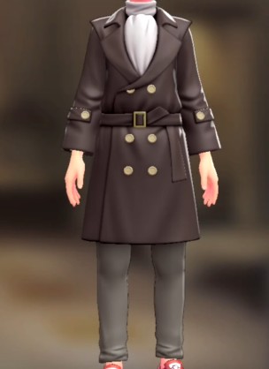 「ポケモン レジェンズ Z-A」における服装(着せ替え)「トレンチコート&パンツセット - ダークブラウン ホワイト×グレージュ」の画像や販売場所・ブランドなどを紹介しています。
