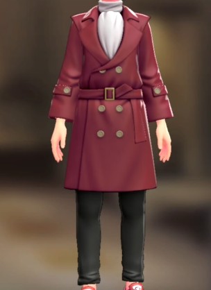 「ポケモン レジェンズ Z-A」における服装(着せ替え)「トレンチコート&パンツセット - ワインレッド ホワイト×ブラック」の画像や販売場所・ブランドなどを紹介しています。