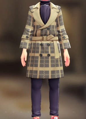 「ポケモン レジェンズ Z-A」における服装(着せ替え)「トレンチコート&パンツセット - ブレイブリーグレー パープル×パープル」の画像や販売場所・ブランドなどを紹介しています。
