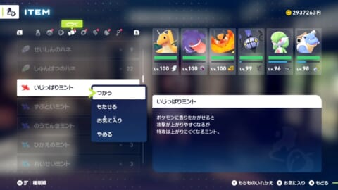 ポケモンZAにおける「いじっぱりミント」は、ポケモンに使うと「攻撃が上がりやすくなるが特攻が上がりにくくなる」性格補正に変えるアイテムです。