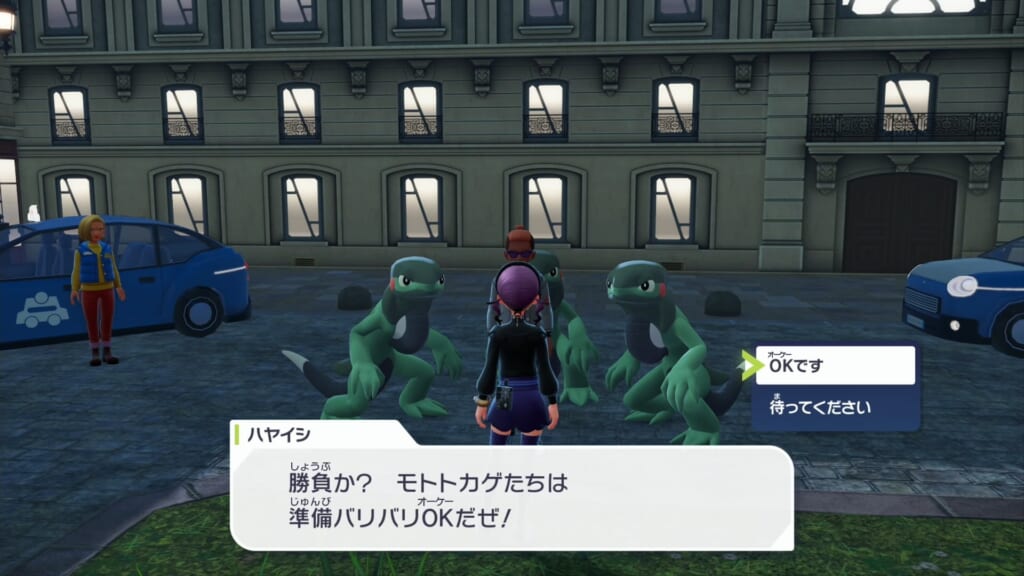 ハヤイシに再度話しかけ「OKです」を選択するとバトルになります。