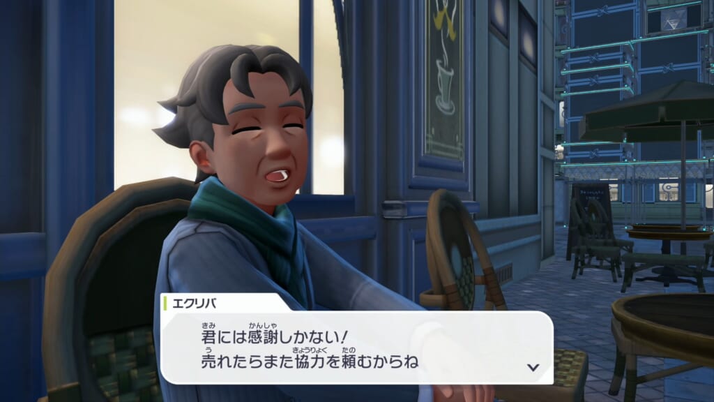 カフェ・カンコドールの席に座っているエクリバに話しかけてサイドミッションを受注します。