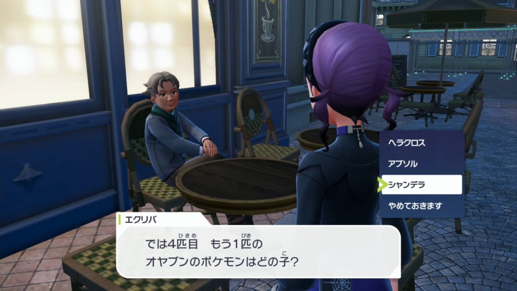 会話が進行するので、それぞれの条件に合うポケモンを選択します。