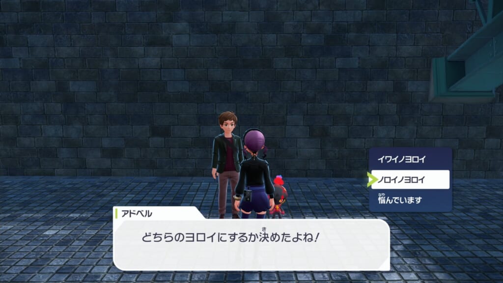 会話イベント進行後、イワイノヨロイ・ノロイノヨロイのいずれかを選択します。