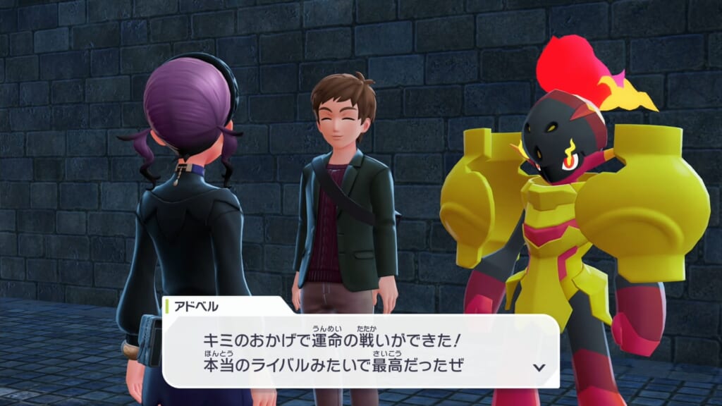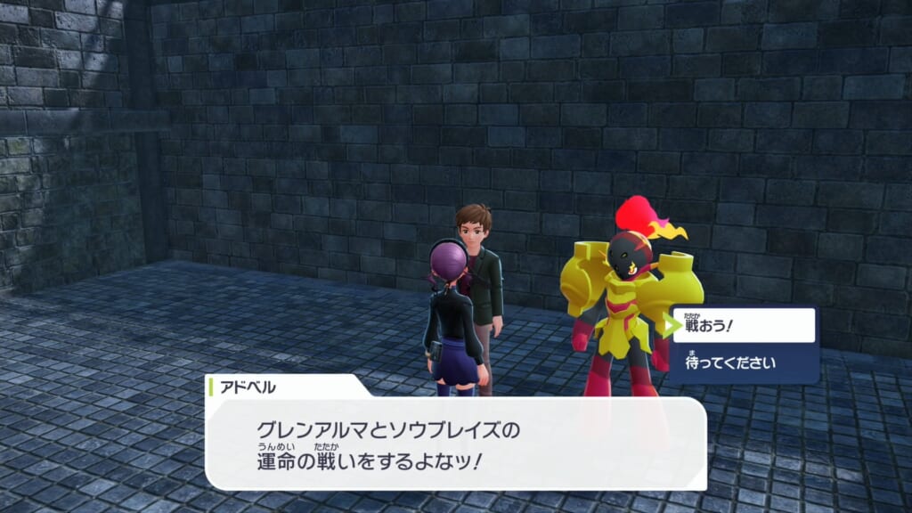 アドベルに話しかけ「戦おう!」を選択するとバトルになります。