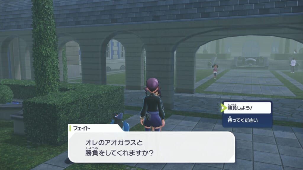 フェイトに話しかけ「勝負しよう!」を選択するとバトルになります。
