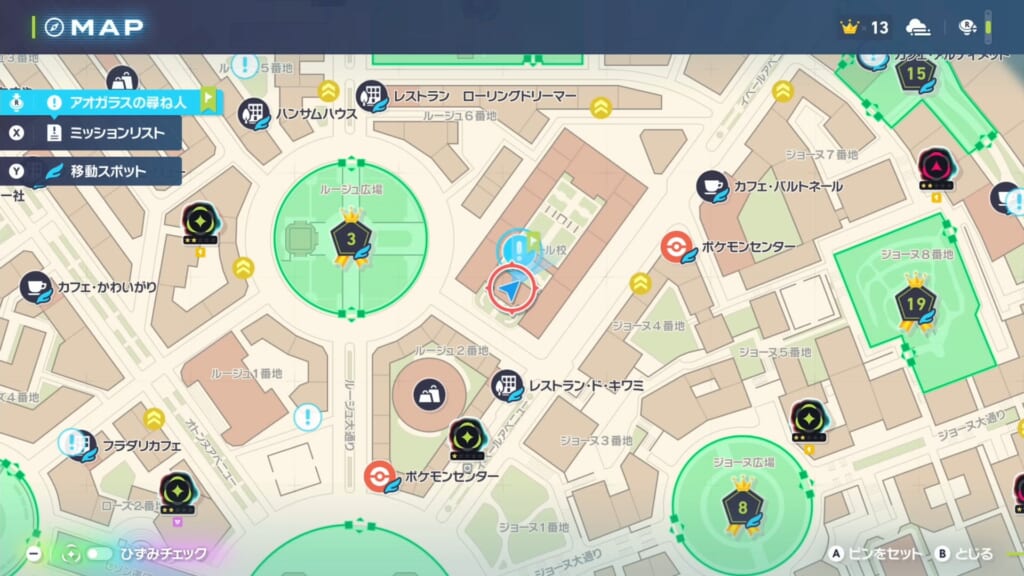 ミアレシティ北東にあるエトワール校に移動するとサイドミッションが進行します。