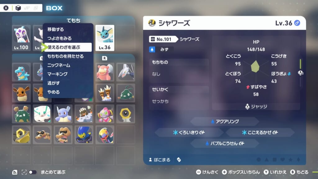 バブルこうせんを覚えたポケモンを手持ちに入れる