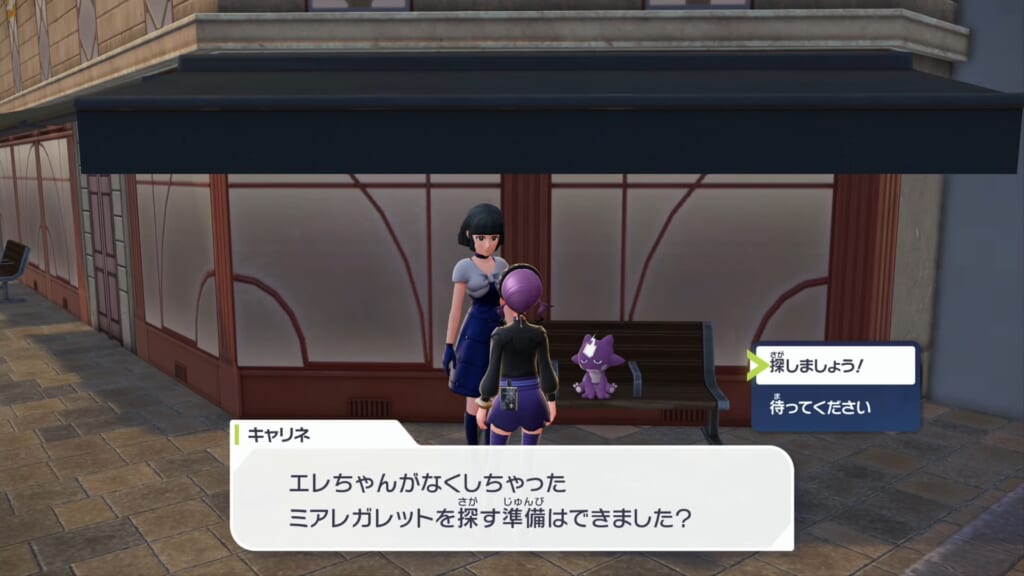 キャリネに再び話しかけ、「探しましょう!」を選択してサイドミッションを進行します。