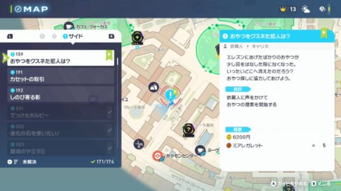 『ポケモン レジェンズ Z-A』に登場するサイドミッション「おやつをクスネた犯人は?」の攻略情報を以下で解説しています。