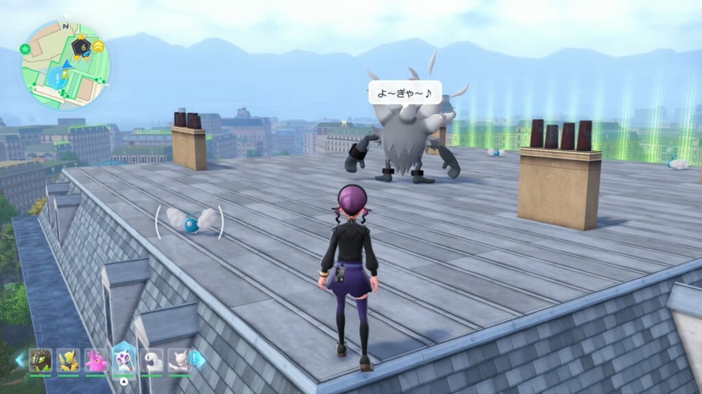 ワイルドゾーン6番に入り、ホロベーターで屋上まで登り 屋根の上にいるハナちゃんを探します。