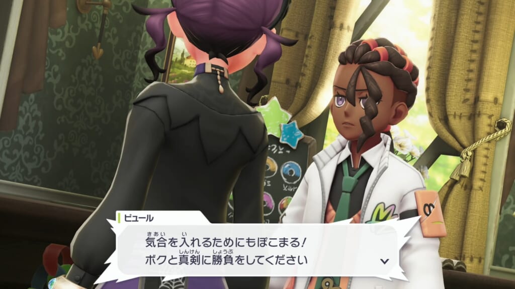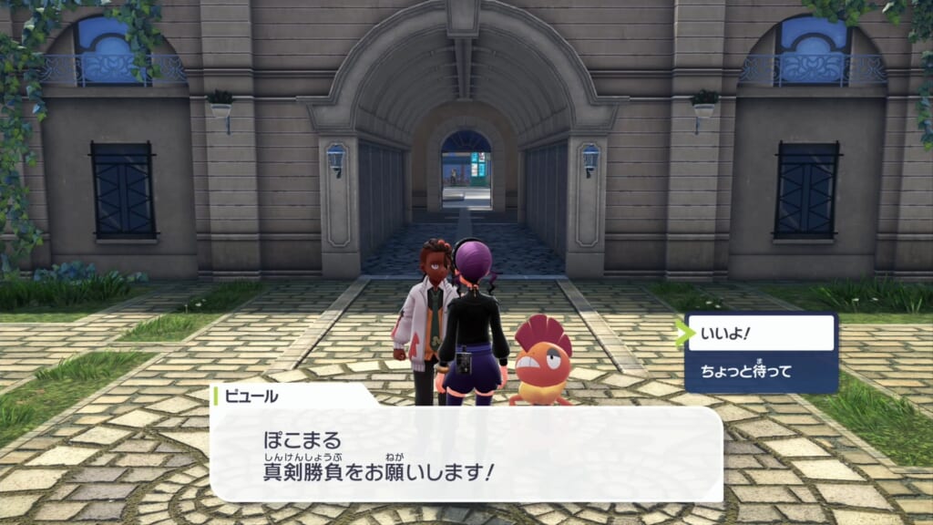 ホテルZから出てピュールに話しかけ「いいよ!」を選択するとバトルになります。