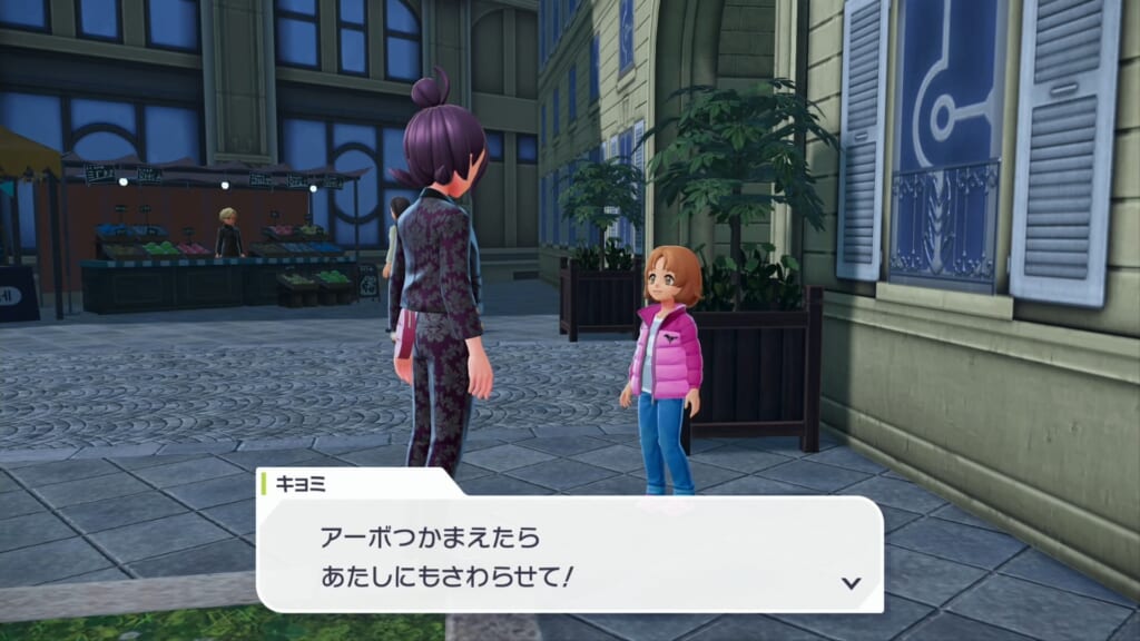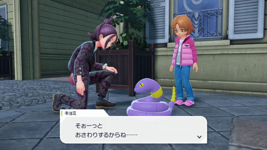 | 概要 | へびポケモンのアーボのしっぽの手触りが気になる少女。捕まえたアーボをみせてしっぽを触らせてあげよう。 |