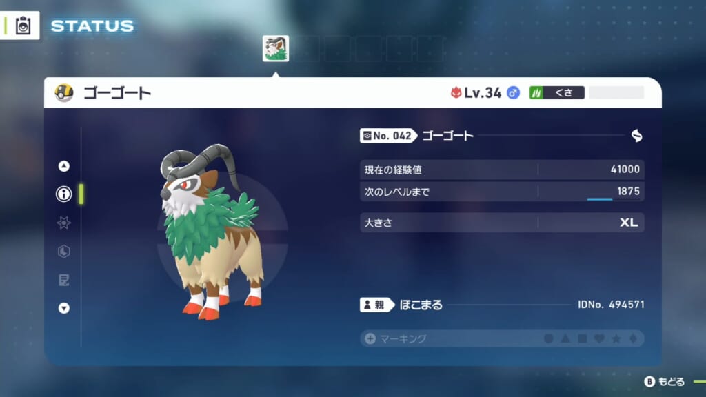 メェークルのレベルを33にするとゴーゴートに進化可能になります。