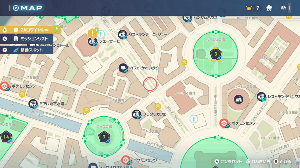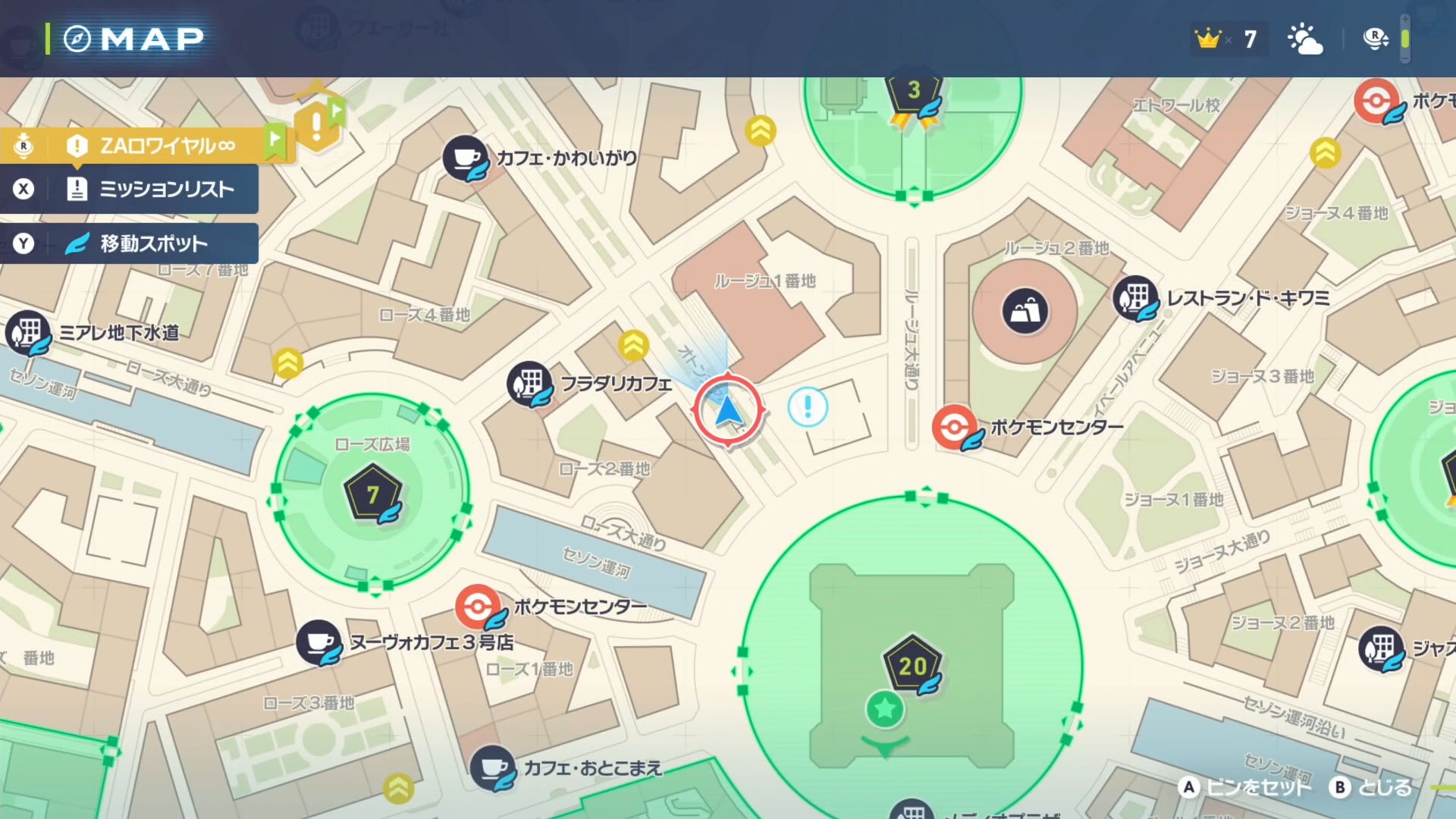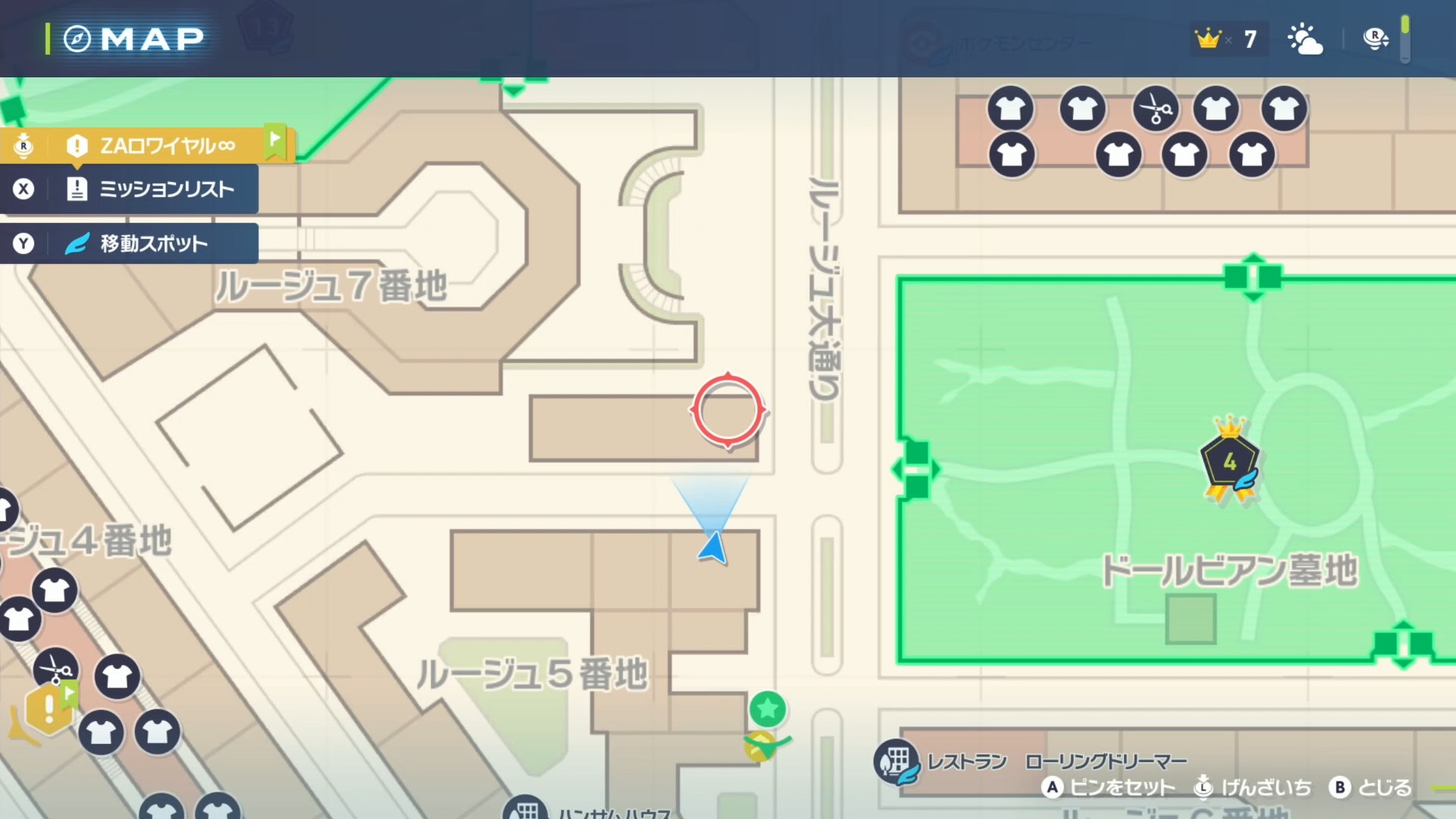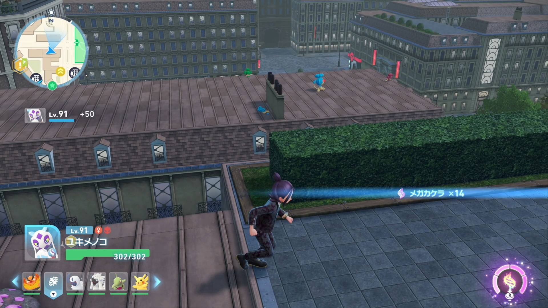 ミアレシティ北東、レストラン ローリングドリーマーの正面にあるホロベーターで屋上へ上がり、北側の少し低い屋根にロトムグライドで移動した地点にいます。