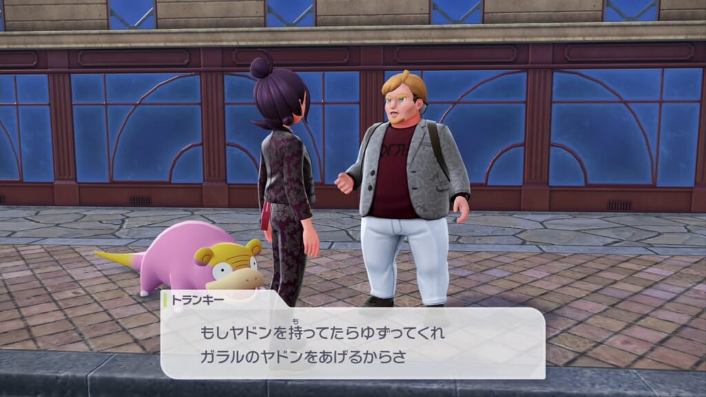 会話してサイドミッション受注後、ヤドンを捕獲してトランキーと交換します。