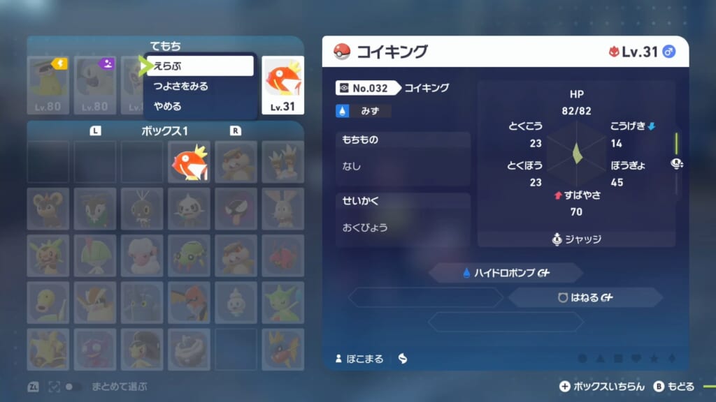 再びハネルと会話し、ボックスや手持ちからオヤブンコイキングを選択して見せると報酬を受け取ってサイドミッションクリアとなります。