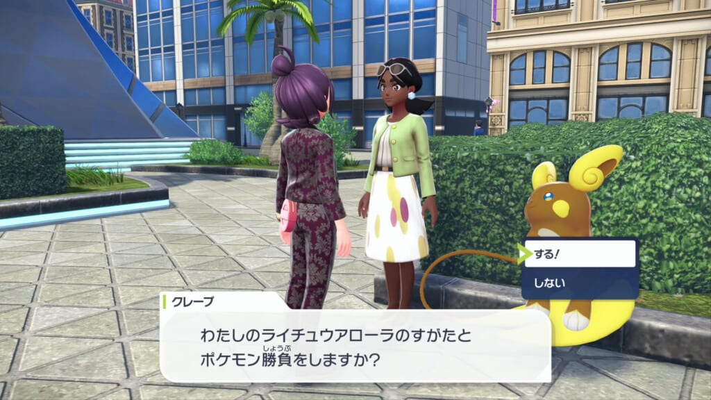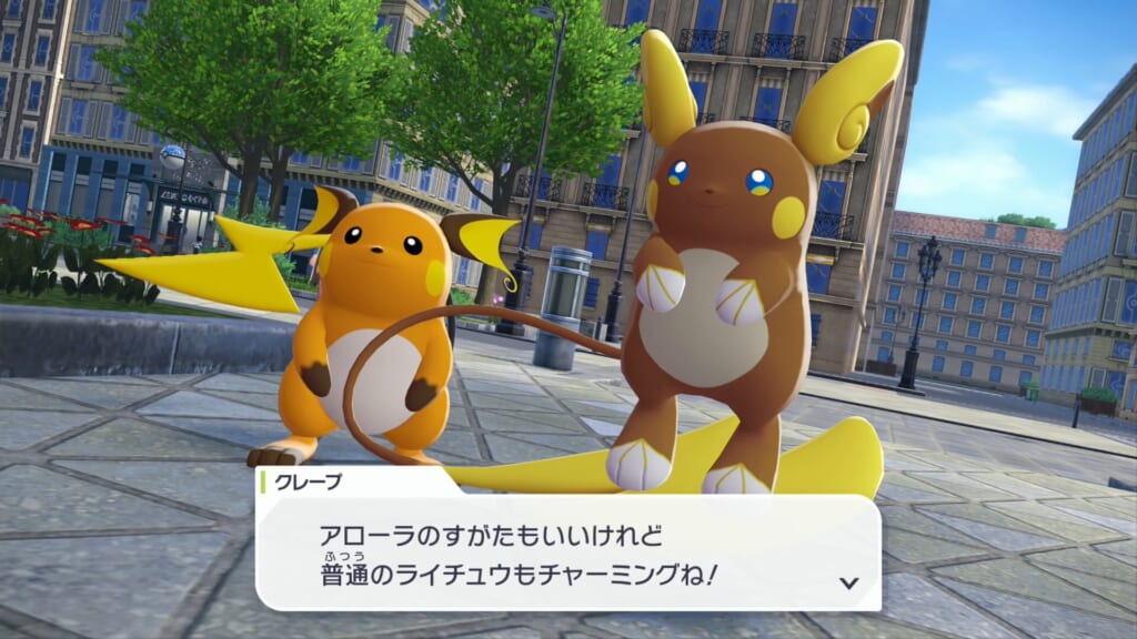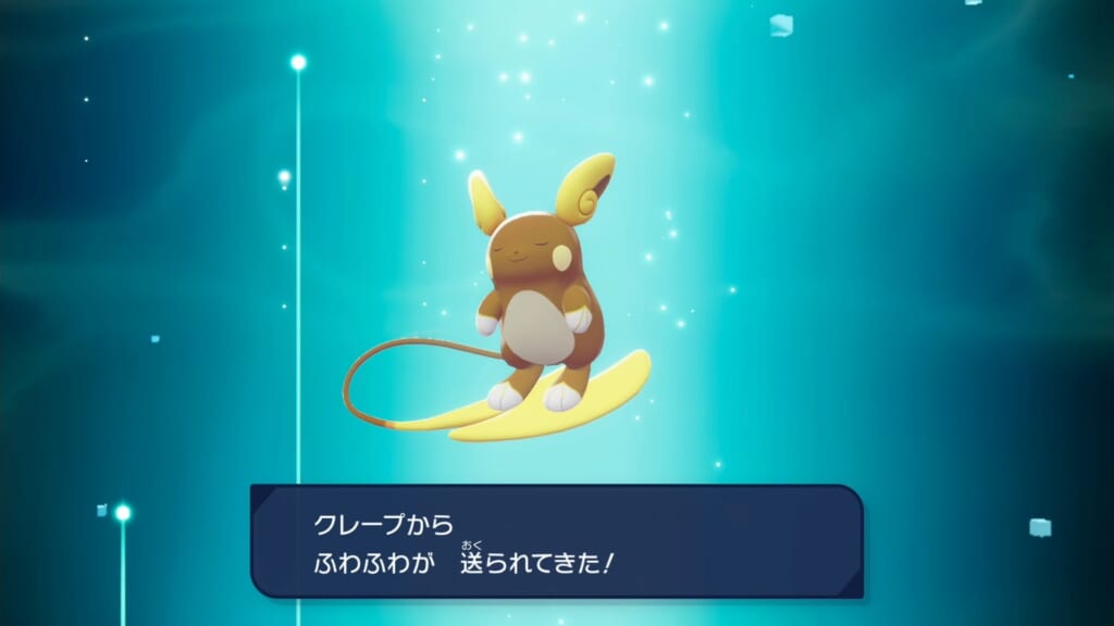 | 概要 | アローラ地方のライチュウはほかの地方と姿が違うらしい。依頼人のアローラのライチュウとこちらのライチュウを交換しよう。 |