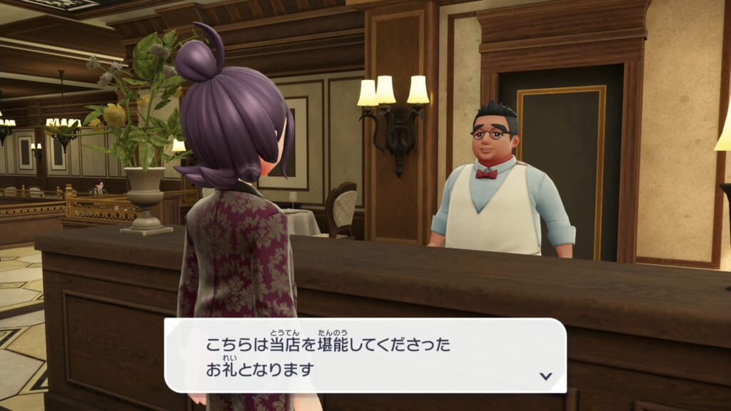 受注可能タイミング メインミッション31 マスカットの呼び出し 受注後 発生場所 レストラン・ド・キワミ 報酬 ・2000円 ・ マックスアップ ×5 ・ インドメタシン ×5 |