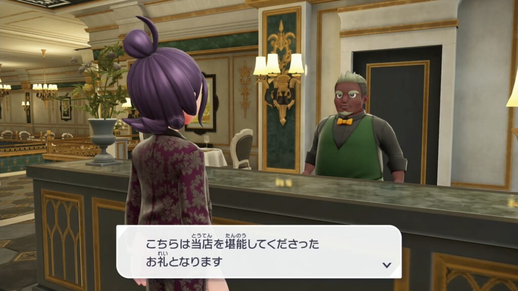 3連勝すると会話イベントが進行し、レストラン・ド・キワミの受付から報酬を受け取ってサイドミッションクリアとなります。