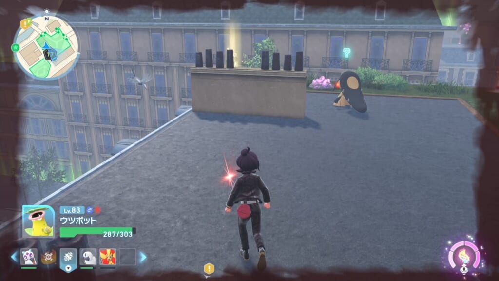 屋上のオヤブンクチートがいる地点のすぐ近くにあるキラキラを調べるとエアームドが出現しバトルになります。
