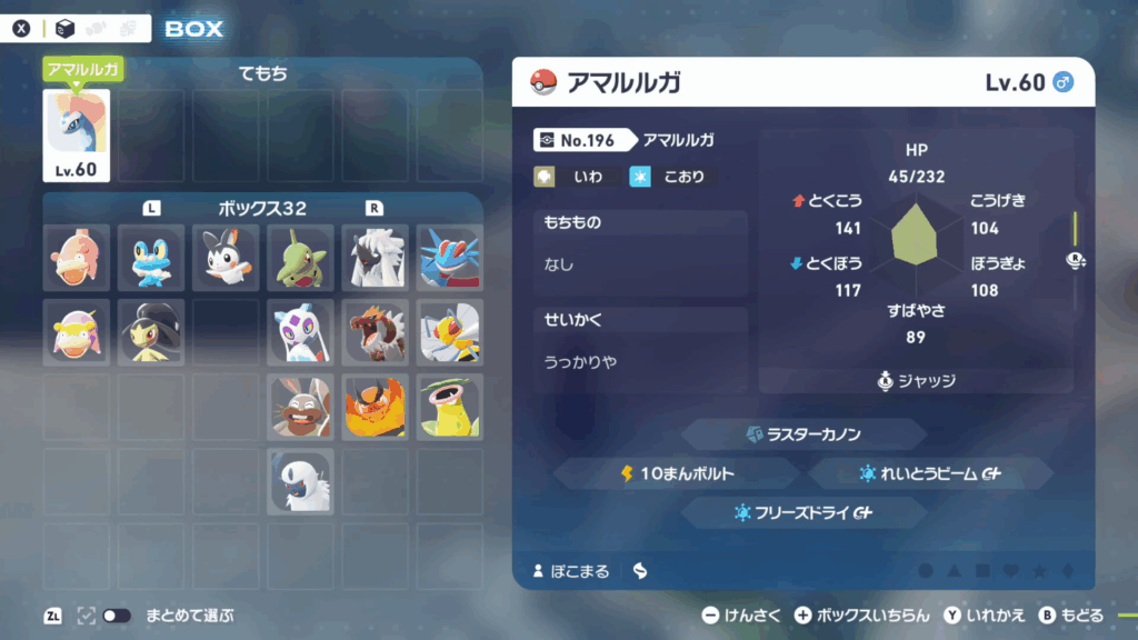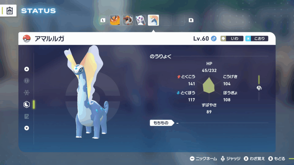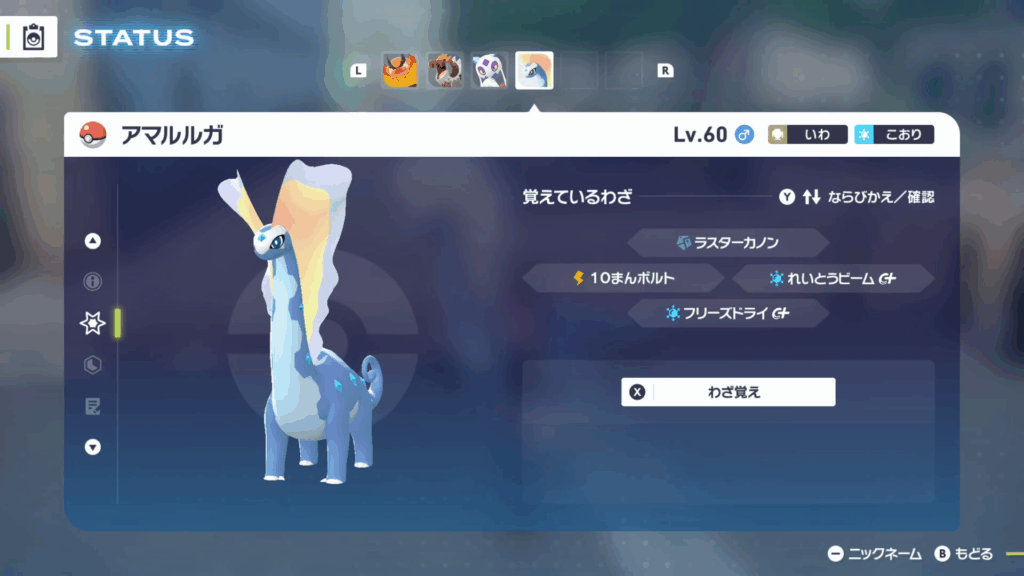 アマルルガはレベル60ほどに育成し、こおり技を2つ習得させておきましょう。