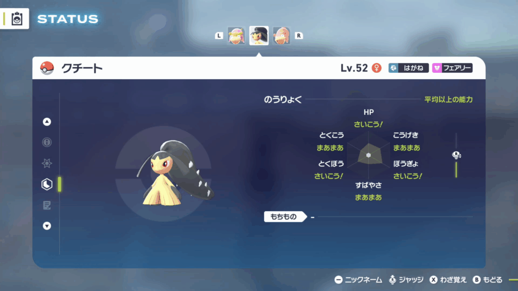 捕獲したクチートは3VかつサイズがXLで固定となります。
