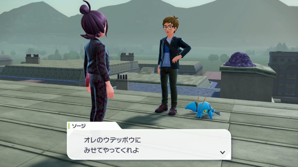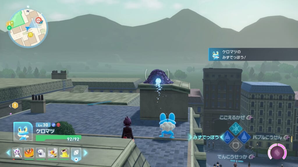 ミアレシティ北東のポケモンセンター:ジョーヌの裏手にあるはしごを登り、建物の屋上を伝って移動します。