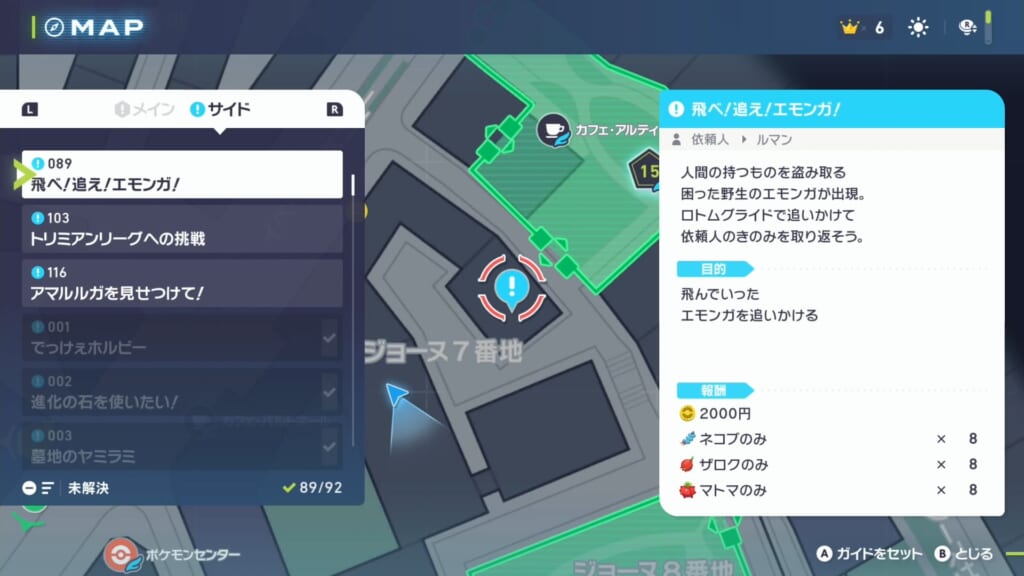 『ポケモン レジェンズ Z-A』に登場するサイドミッション「飛べ!追え!エモンガ!」の攻略情報を以下で解説しています。