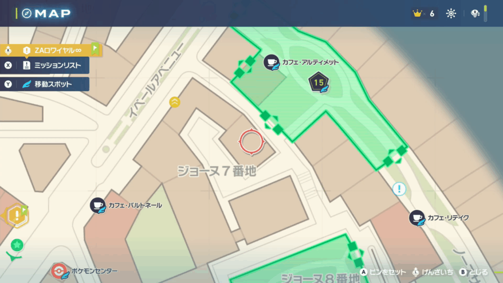 ミアレシティ北側にあるポケモンセンター:イベールに移動し、北東にあるホロベーターで屋上へ移動します。