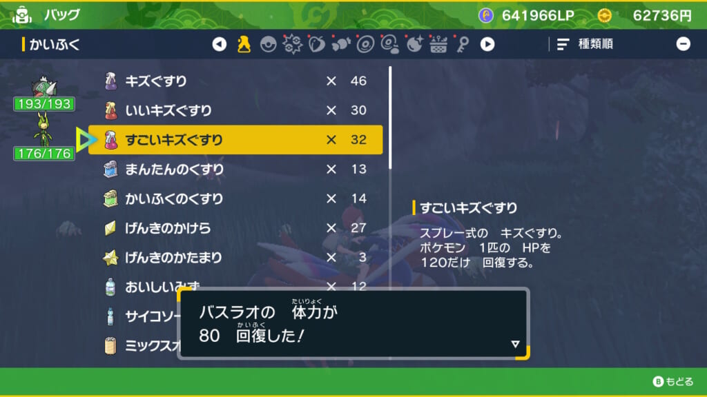 バスラオがひんしになってしまうとカウントされている反動ダメージはリセットされてしまいます。なるべく手痛い反撃が来づらいポケモンや、レベルが低めのポケモンなどと戦うようにしましょう。
