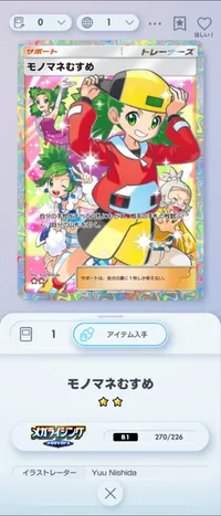 ミッション関連でいくと、3枚集めるとエンブレムもらえる虹枠アローラダグトリオとか、最新弾でいくと虹枠メルメタル、虹枠エビワラー、古い弾でいくと虹枠ミュウや黒枠ミュウ、虹枠エンテイぐらいですかね!
