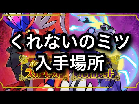 「ポケモン スカーレット バイオレット」におけるくれないのミツの入手方法や効果などを紹介しています。