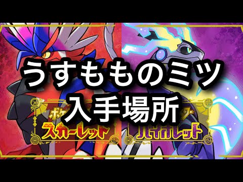 「ポケモン スカーレット バイオレット」におけるうすもものミツの入手方法や効果などを紹介しています。