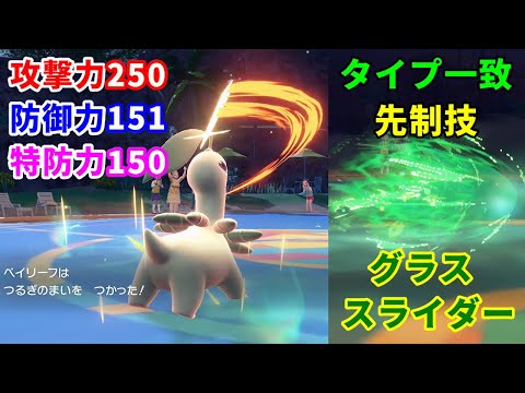 「ポケモン スカーレット バイオレット」におけるベイリーフの種族値やおぼえる技、入手方法、進化系統などすべての情報を紹介しています。