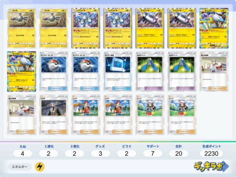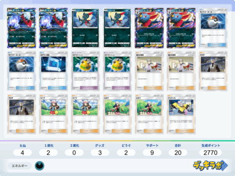・序盤はファイヤーexでヒトカゲにエネルギー加速し、リザードンexの「ぐれんのあらし」連打で勝つデッキです。