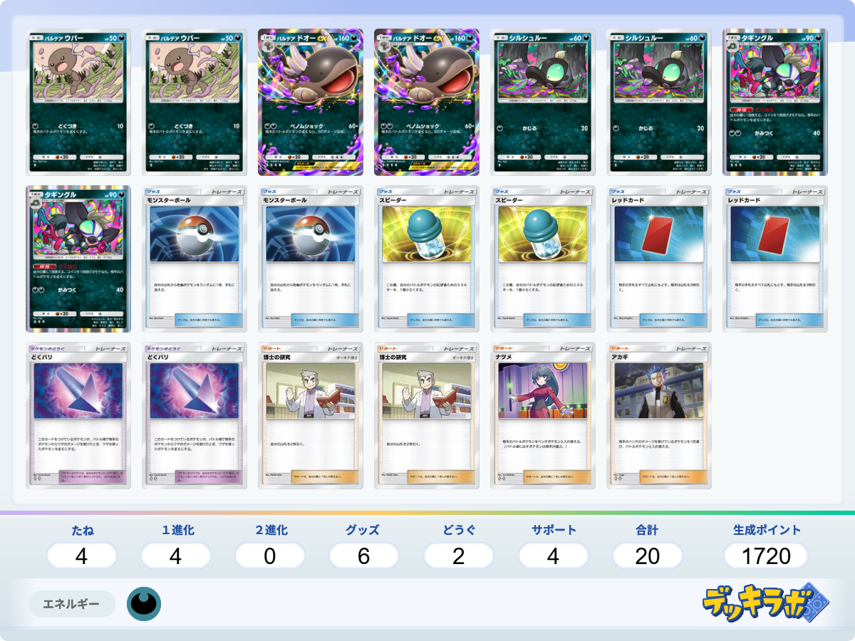 ・アクジキングexのHPが高くエネルギーをトラッシュする技も持っているので、一撃で倒せるポケモンか少ないエネルギーで序盤から攻撃できるポケモンで戦いましょう。
