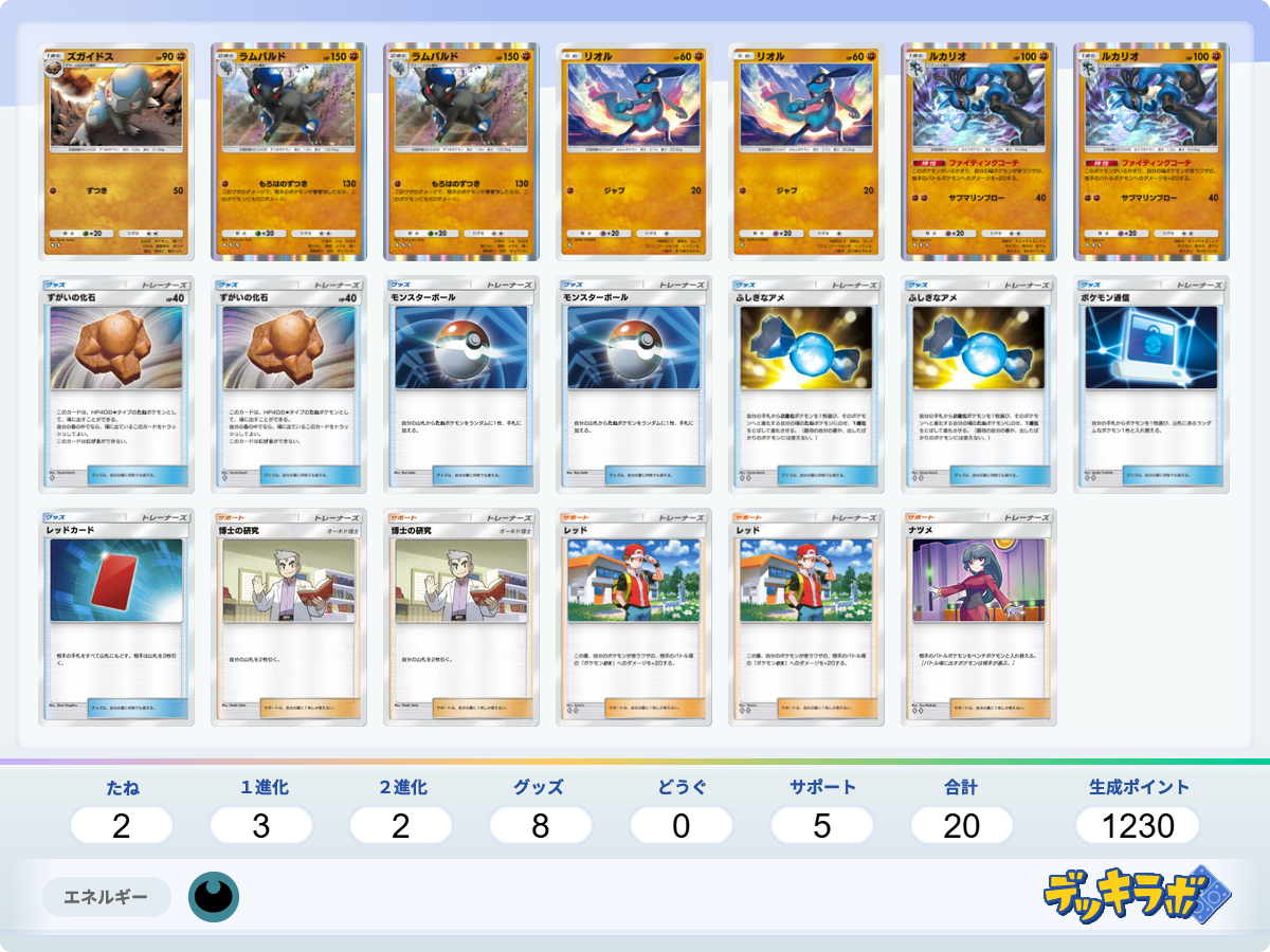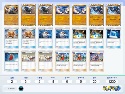 ・序盤はファイヤーexでヒトカゲにエネルギー加速し、リザードンexの「ぐれんのあらし」連打で勝つデッキです。