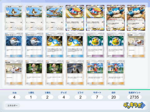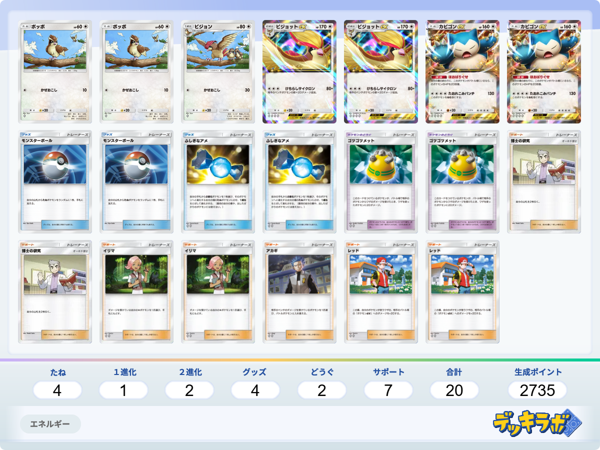・序盤はカビゴンexを壁にしつつピジョットexを育て、準備が出来たらカビゴンexをイリマで回収してピジョットexで攻撃します。