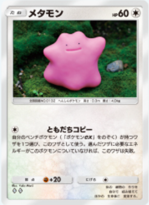 既存のメタモンは相手ポケモンのワザに依存し エネルギーの関係上実用しづらいカードだったため、デッキ構築次第ではエネルギー加速要員として使ったり、アタッカーとして動かしたりと柔軟な動きができそうです。