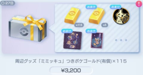 ポケゴールド120(内無償20)を単体で購入すると2,800円なので、+400円で人気の高いミミッキュのサプライを入手できる非常にお得なセットとなっています。