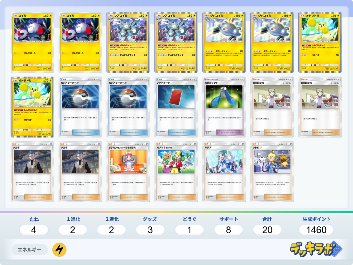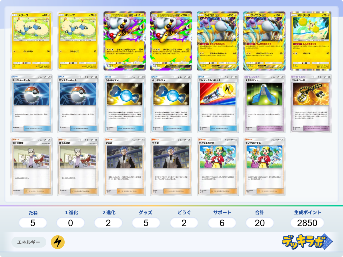 ・ポケモンex対策のオドリドリ、先行の動きを強化できるゼラオラなど、電気タイプの強力なカードとシナジーが強い