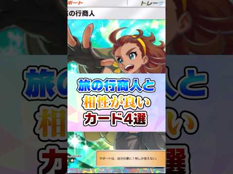 旅の行商人は山札を上から4枚見て、その中から「ポケモンのどうぐ」をすべて手札に加えることができるサポートカードです。それ以外のカードはデッキに戻ります。