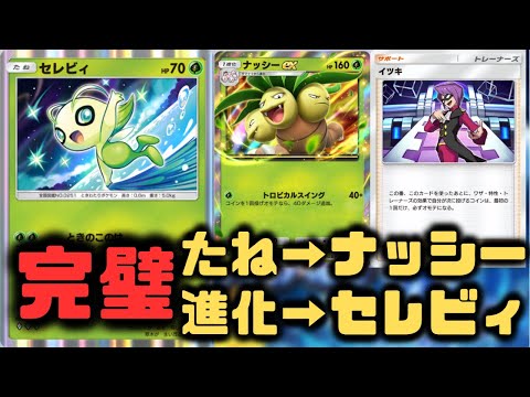 セレビィは、2エネルギーの「ときのこのは」で相手ポケモンの進化を1段階戻せるポケモンです。