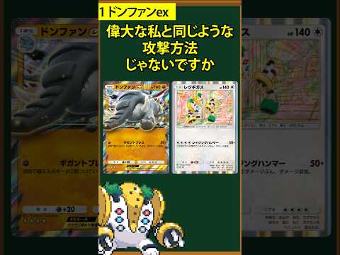 序盤の被ダメージが少ない場合は ドンファンexに進化して強気に攻めていき、被ダメージが大きければ非exのドンファンに進化することで 相手の取得ポイントを減らしつつ 1エネルギーで高火力を出していくといった形で 立ち回りが柔軟になります。